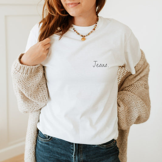 Jesus - Minimalist Christian Tshirt in WhiteRegular price $35.00Regular priceUnit price / per$35.00Sale price $35.00Sold out